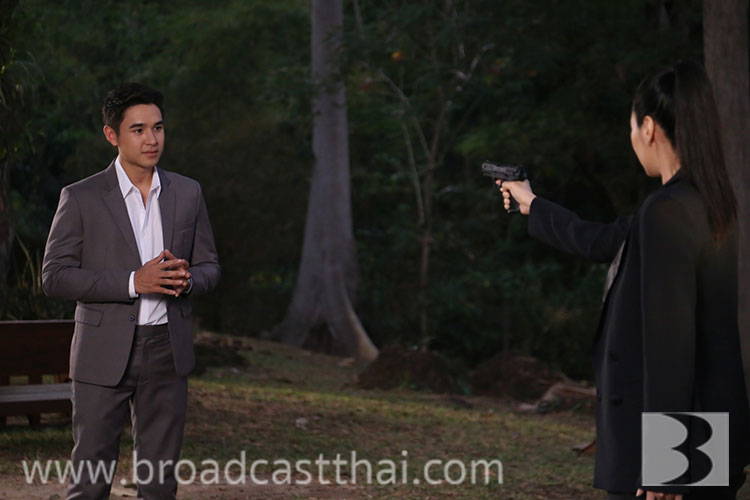 งานนี้ถ่ายทำกันสู้แสงเย็นพระอาทิตย์ตกสุดๆ นิวโบวี่เดินมาหน้าเซทเพื่อซ้อมคิวกันให้เป๊ะที่สุด เนื่องจากมีโอกาสถ่ายทำสู้แสงได้เพียง 1 เทค และซ้อม 1 เทคเท่านั้น!! และยังต้องติดเอฟเฟกต์อีก แต่ประสบการณ์ทางการแสดงที่สั่งสมมาอย่างอัดแน่นของทั้ง โบวี่และนิว ฉากนี้ทุกอย่างต้องพูดว่าไหลลื่น และดีย์มากจริงๆ โบว์กับบทที่ยาวเกือบ 3 หน้า แถมยังต้องเดี๋ยวโกรธเดี๋ยวดี เดี๋ยวร้องไห้ ส่วนนิวที่เบื้องหน้าดูอยากให้ทุกอย่างจบลงตรงนี้ แต่ก็แอบซ่อนแผนการบางอย่างไว้อยู่ภายใต้สีหน้าที่เรียบเฉย ต้องบอกว่าฉากนี้ มันส่งอารมณ์กันได้ถึงพริกถึงขิงมากจริงๆ ก่อนที่น้องลีน่าจะพุ่งเข้ามาทำร้ายความสงบ โบวี่เดือดอีกครั้งหันกระบองปืนยิงไปที่ลีน่า แต่นิวพุ่งเอาตัวเข้ามารับแทน นิวล้มทับลีน่า จนแทบประคองไว้ไม่ไว้ ส่วนโบวี่ก็กริ๊ดร้องที่ยิงคนที่ทั้งรักทั้งแค้นไป ปิดฉากฟ้ามืดพอดี ผู้กำกับสั่งคัทผ่าน!! ฉลุยง่ายสุด แต่กว่าจะสำเร็จขนาดนี้ ต้องบอกว่าทุกคนทำการบ้านมาอย่างหนัก เรียกว่าเป็นอีกซีนที่แสดงอารมณ์ได้แตกต่าง และมันคงชัดเจนต่อหน้าแฟนๆ ละครแล้วสินะว่าใครคือ “มทิรา” อะไม่พูดหรือสปอยมาก