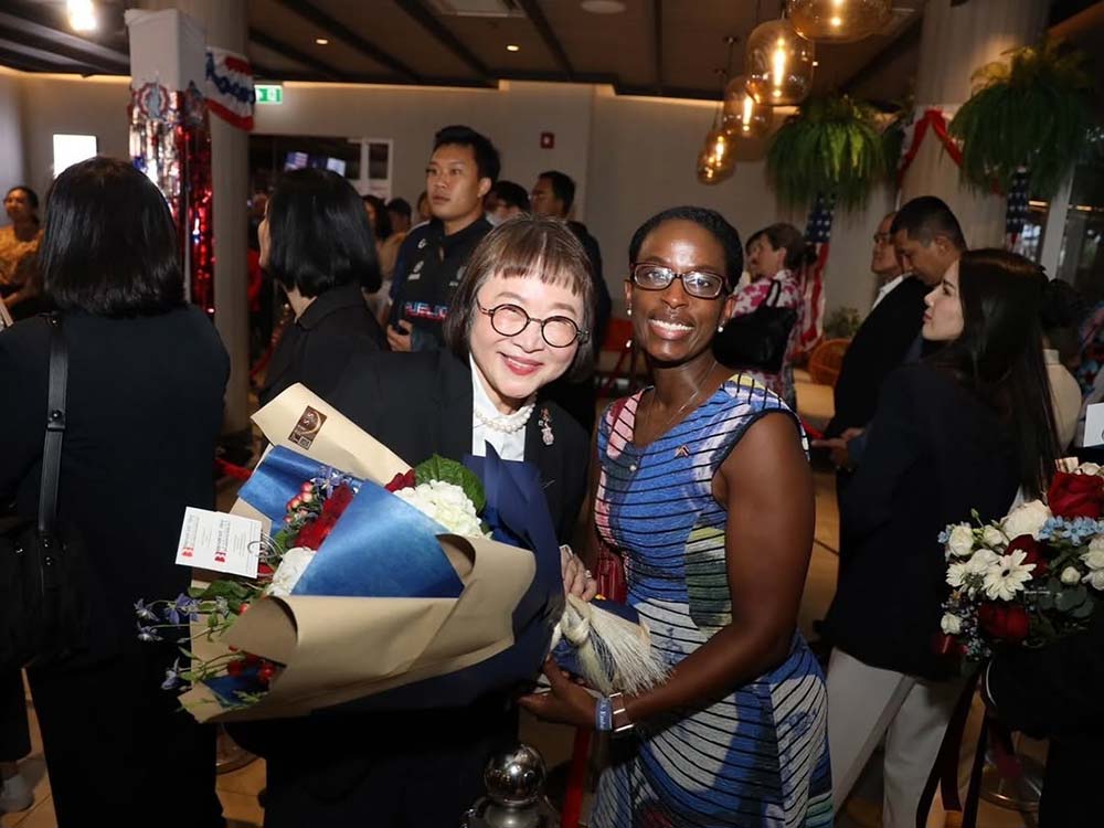 "พี่หน่อง อรุโณชา" ร่วมฉลอง พร้อมมอบช่อดอกไม้ให้กับ "โรเบิร์ต เอฟ. โกเดค" เอกอัครราชทูตสหรัฐประจำประเทศไทย "The 249th Anniversary of the Independence of the United States of America" 249 ปี วันประกาศอิสรภาพสหรัฐอเมริกา บรรยากาศเต็มไปด้วยความอบอุ่น