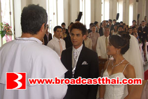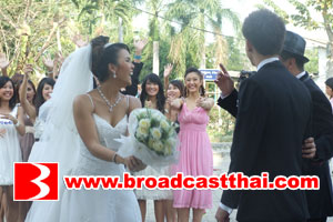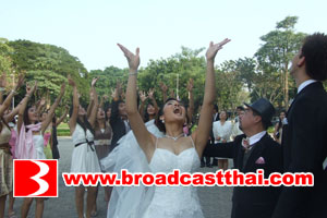 ซึ่งฉากนี้ก็ยกกองไปถ่ายทำกันที่โบถ์สแถวๆ ลำลูกกาคลอง12 งานนี้เจ้าสาวเอมิกา(อิ๊บ) มาถึงกองถ่ายแต่เช้า เพราะต้องเตรียมตัวเสื้อผ้าหน้าผมเป็นเจ้าสาวเต็มที่ ทำเอาอิ๊บออกอาการตื่นเต้น ที่ได้สวมชุดเจ้าสาว ฟากเจ้าบ่าวภีห์มะ(แอนดรูว์) ก็ตัดผมทำหล่อพร้อมสวมชุดเจ้าบ่าวเหมือนกัน และหลังจากที่แอนดรูว์-อิ๊บแต่งตัวในชุดบ่าวสาวเสร็จเรียบร้อยแล้ว ผู้กำกับ หมี โชติรัตน์ รักเริ่มวงษ์ ก็เรียกนักแสดงออกมาเพื่อซักซ้อมคิว แต่พอมาถึงภายในโบถ์สทั้งนักแสดงและผกก. เลยขอชักภาพ นิ่งสวยๆ เก็บไว้เป็นที่ระลึกซะหน่อย ก่อนที่จะเริ่ิมซ้อมคิวต่างๆ โดยเริ่มจาก แอนดรูว์-อิ๊บ ควงแขนกันเดินมาหยุดยืนตรงหน้าบาทหลวง พร้อมให้คำสัญญาว่าจะรักกันและดูแลกันไปตลอด แล้วทั้งคู่ต่างก็สวมแหวนให้กันและกันก่อนจะเดินออกมาหน้าโบถ์ส เพื่อโยนช่อดอกไม้ งานนี้สาวๆ ก็รีบมาจองพื้นที่แถวหน้าเป็นการใหญ่ เพื่อรอรับช่อดอกไม้และหวังจะเป็นคนต่อไปที่จะหักคานทอง