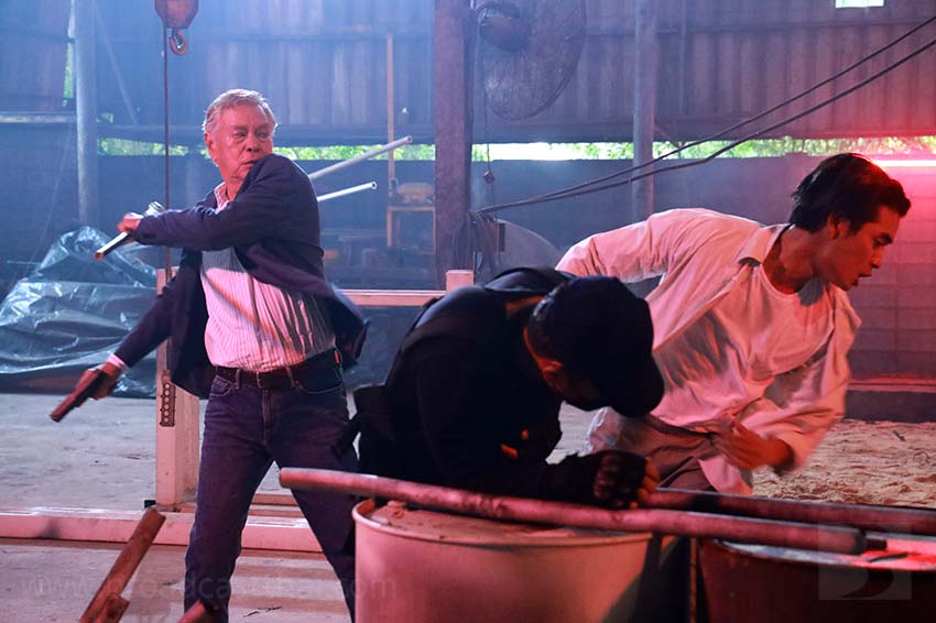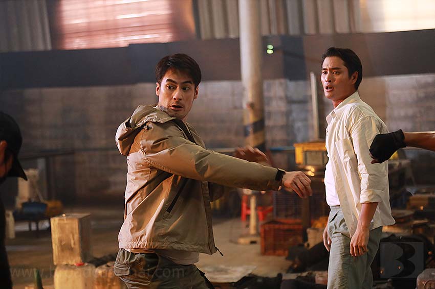 โดยงานนี้ทีมงานยกทัพกันไปถ่ายที่โกดังแห่งนึง ลงเบรคดาวน์ให้บู๊กันแบบสุดตัว ตั้งแต่หน้าทางเข้าไปจนถึงด่านในสุด งานนี้ "หนุ่มบอย หนุ่มปั้นจั่น" คือรับบทหนักทั้งคู่ แบบไม่พึ่งแสตนอินเลย ทุกคิวที่บู๊คงลงมาซ้อม ท่า คิว กันรอบเดียวก็รีบบอก ผกก. ว่าขอซ้อมแบบถ่ายจริงเลย ถ้าได้ก็ถือว่าผ่าน!!! งานนี้ต้องยกนิ้วให้ทั้งคู่จริงๆ เพราะเล่นกันแบบอาวุธครบมือ ปืน ก่อน หมดก็คว้าไม่แถวนั้น สู้กันจนสุดท้ายเหลือแค่มือเบา ใช้มือใช้เท้าสู้ คลุกดิน ล้มถีบ คลุกทรายกันจนแทบหมดแรง แต่ส่งท้ายทั้งที ทั้ง บอย นะโม ปั้นจั่นก็ใส่เต็มทึ่ ไม่แม้แต่ อาหนิงที่ก็ยังต้องออกแรง ยกไว้ฟาดสู้กับปั้นจั่นเช่นกัน