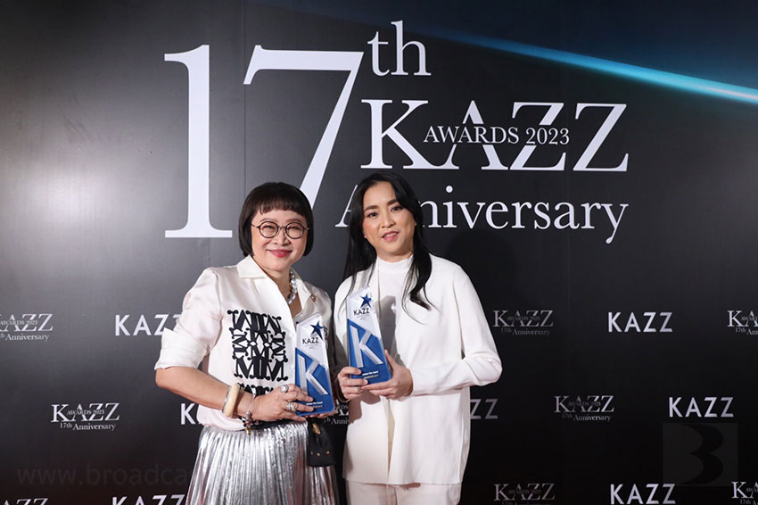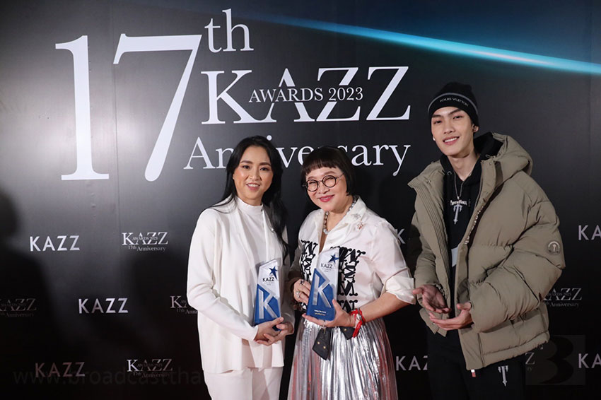 พี่หน่อง อรุโณชา จากบรอดคาซท์ฯ คุณเอ๋ ปรียาวรรณ ตัวแทนจาก GDH รวมถึง น้องนน ชานน นักแสดงจากภาพยนตร์ บุพเพสันนิวาส ๒ ขึ้นรับรางวัล HOTTEST FILM AWARD และถือโอกาสแสดงความยินดีกับ Kazz Magazine ครบรอบ 17 ปี ในงาน #KAZZAWARDS2023 ปีนี้ ถือเป็นเกียรติอย่างมากที่ภาพยนตร์เรื่องนี้ได้สร้างความสุขให้แก่คนไทยทั้งในและต่างประเทศ แถมยังได้หนุ่มหล่อขวัญใจสาวๆ "ต้า อธิวัตน์" ร่วมเดินพรมแดงอีกด้วย