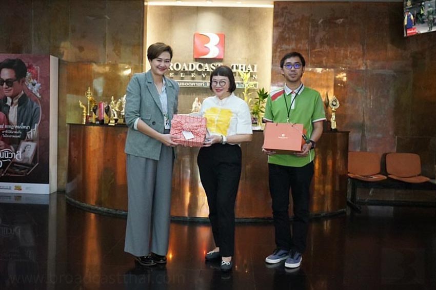"คุณณภัทร์ชนม์ เชิดเพชรรัตน์" ผู้จัดการทีมบริหารความสัมพันธ์ลูกค้าธุรกิจขนาดกลาง และ "คุณพชร เปรมศรี" ผู้ดูแลความสัมพันธ์ลูกค้าธุรกิจขนาดกลาง ธนาคารกสิกรไทย เข้ามอบขนมไหว้พระจันทร์ ให้กับ "พี่หน่อง อรุโณชา"