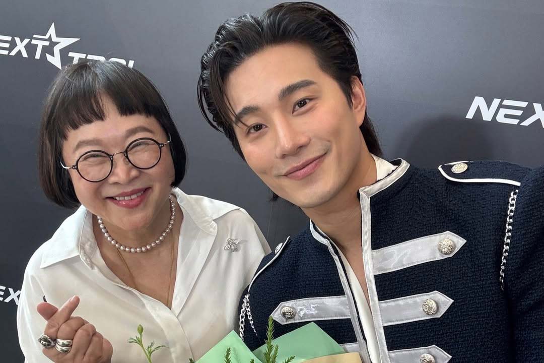 "พี่หน่อง อรุโณชา" มอบดอกไม้แสดงความยินดีกับ "บี้ ธรรศภาคย์" ผู้บริหาร "Next Idol Academy"