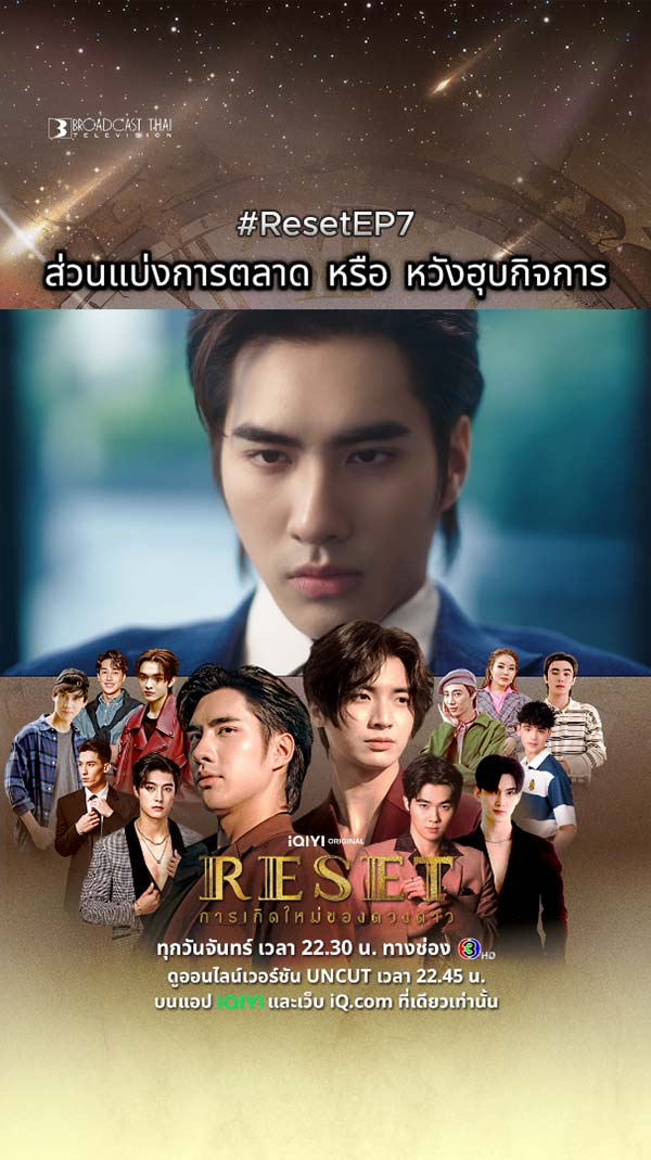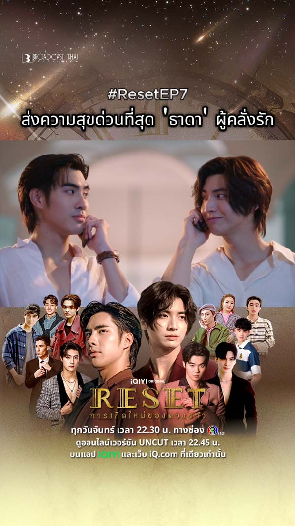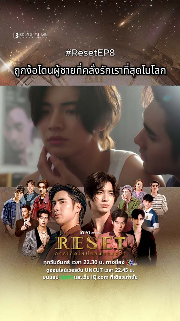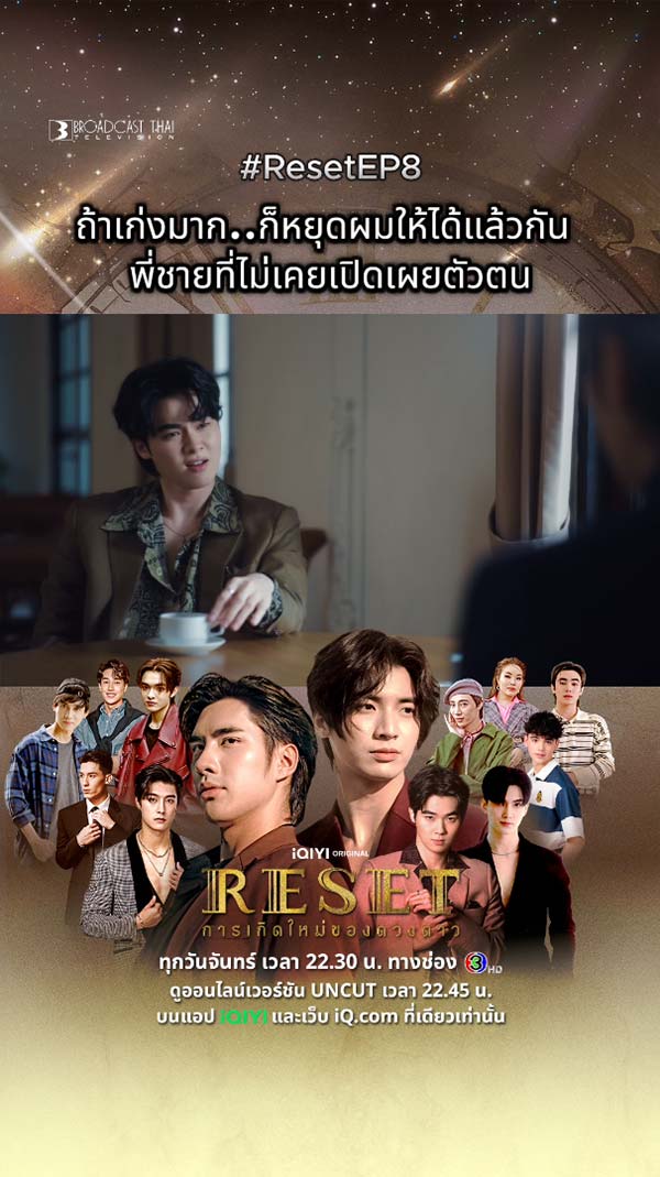 14-07-2568 : ผมขอจัดเต็ม.. เพราะการที่เห็นคุณไม่มีความสุข คือสิ่งที่ผมเครียดที่สุด ดูสดพร้อมกัน ทุกวันจันทร์ เวลา 22.30 น. ทางช่อง 3HD และดูออนไลน์เวอร์ชัน UNCUT เวลา 22.45 น. บนแอป #iQIYI และเว็บ iQ.com ที่เดียวเท่านั้น #ResetEP7 #ResetTheSeries #iQIYIOriginal