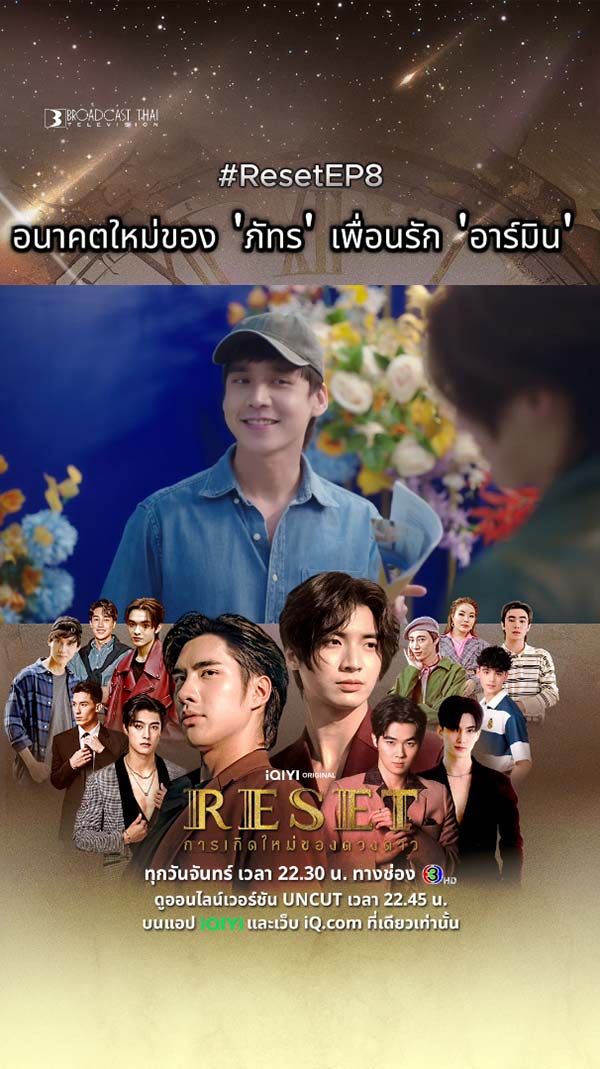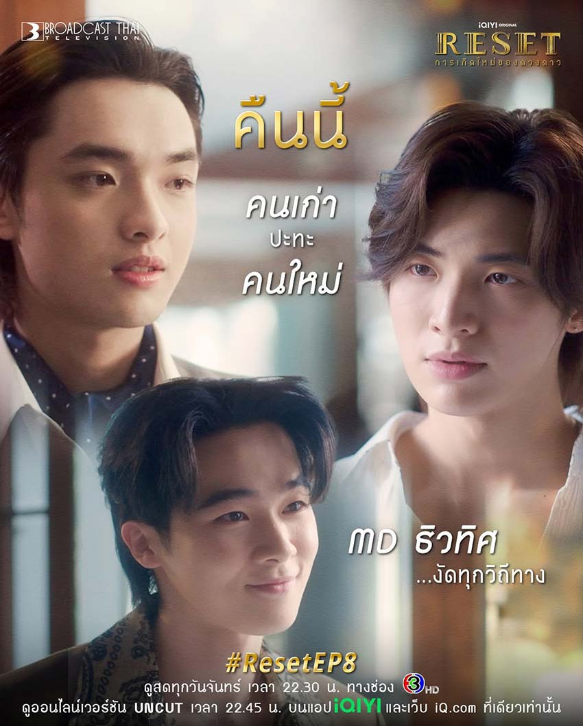 20-07-2568 : เดินหน้าเต็มกำลัง #ResetEP8 ... ความรักครั้งนี้ครั้งสุดท้าย *** ดูสดพร้อมกัน ทุกวันจันทร์ เวลา 22.30 น. ทางช่อง 3HD และดูออนไลน์เวอร์ชัน UNCUT เวลา 22.45 น. บนแอป #iQIYI และเว็บ iQ.com ที่เดียวเท่านั้น #ResetTheSeries #iQIYIOriginal #broadcastthaitv