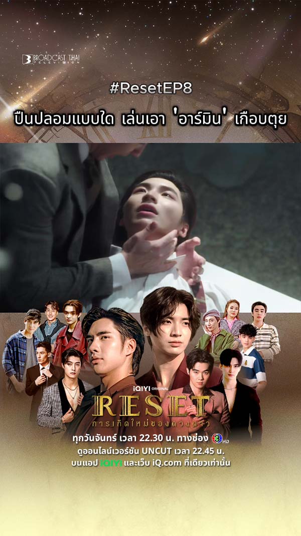 21-07-2568 : On Mondays!! * Trending Time? : 21:30 น. | 09:30 PM (GMT+7) Keyword : RESET PLEASE STAY WITH ME Hashtag # : #.ResetEP8 * ดูสดทุกวันจันทร์ เวลา 22.30 น. ทางช่อง 3HD และดูออนไลน์เวอร์ชัน UNCUT เวลา 22.45 น. บนแอป #iQIYI และเว็บ http://iQ.com #Rese
