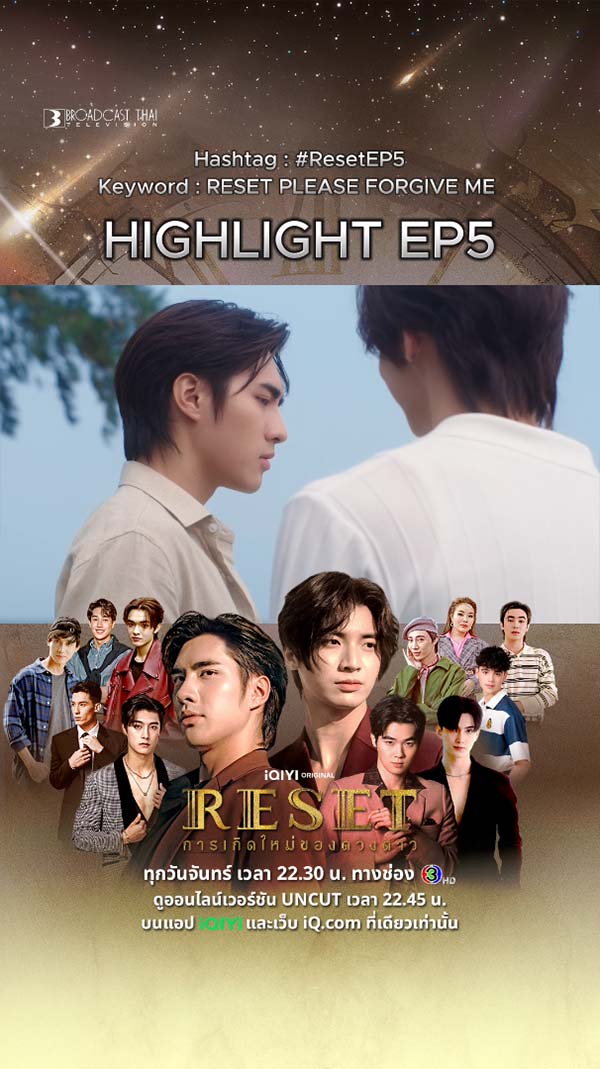19-06-2568 : Press Tour "Reset The Series" - อย่าพลาด รับสิทธิ์เข้างาน iQIYI Original "RESET การเกิดใหม่ของดวงดาว" Love Moment EP6 Screening - คลิกลิงก์เพื่อลงทะเบียน : https://forms.gle/NfCnWL13JCbPdZNP9 *** ดูสดพร้อมกัน ทุกวันจันทร์ เวลา 22.30 น. ทางช่อง 3HD