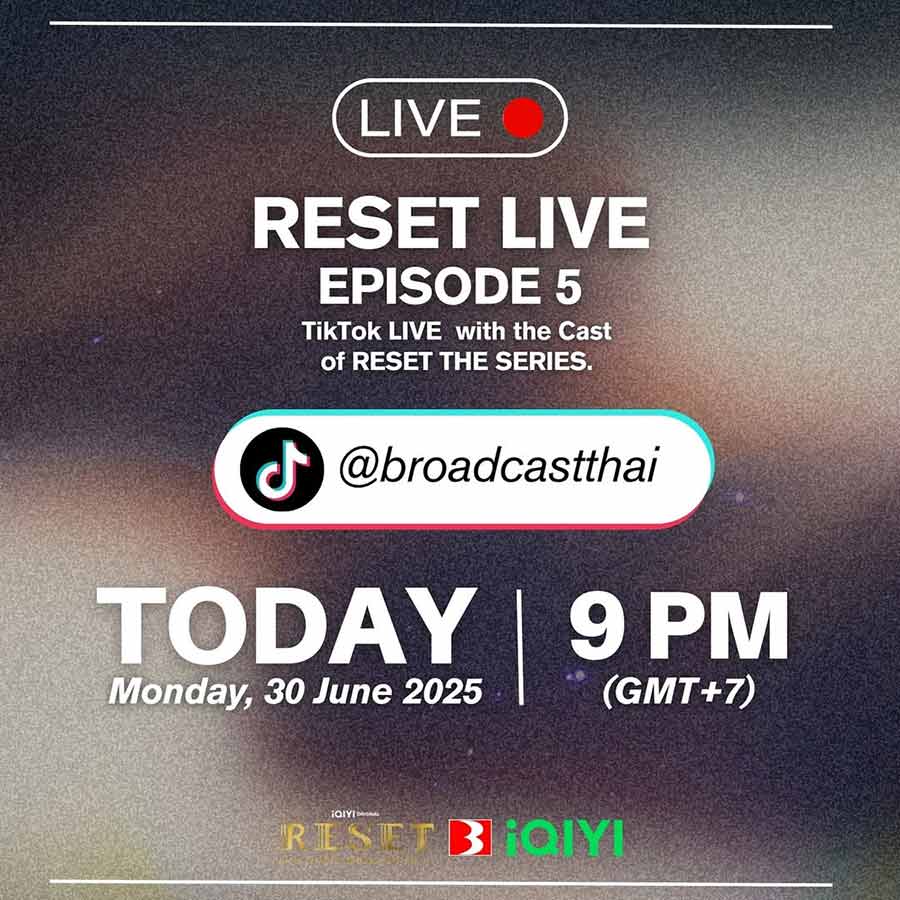 30-06-2568 : *** RESET LIVE*** ก๊อก ๆ ๆ ชวนมาดูไลฟ์เหล่านักแสดงพูดคุย ก่อนดู RESET THE SERIES EP.5 คืนนี้ไปพร้อมกัน Time : 21.00 น. | 9 PM (GMT+7) ทาง TIKTOK : @broadcastthai #ResetTheSeries