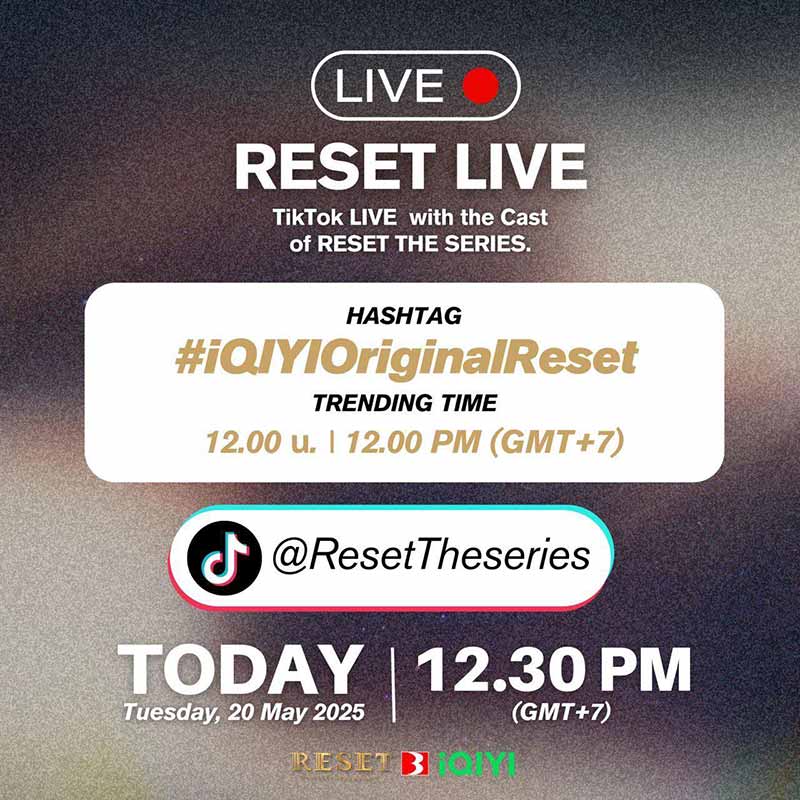 20-05-2568 : *** RESET LIVE *** TikTok LIVE with the Cast of RESET THE SERIES. Hashtag : #.iQIYIOriginalReset Trending Time : 12.00 น. | 12 PM (GMT+7) #pondponlawit #peterpanzz_w #bommu #WinnerTanatat #ResetTheSeries See less
