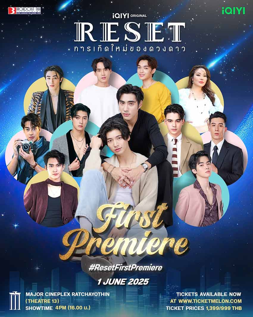 16-05-2568 : อ้อนไม่เก่งแต่รักหมดใจ สามารถซื้อบัตรแล้วมาพบกับพวกเขาได้ในงาน "RESET การเกิดใหม่ของดวงดาว : FIRST PREMIERE" ร่วมรับชม "Reset การเกิดใหม่ของดวงดาว" EP.1 ก่อนใคร พร้อมทีมนักแสดงแบบจัดเต็ม ใกล้ชิด ฟินขั้นสุด! - On : 1 JUNE 2025 - Location : Major Ci