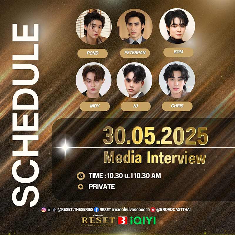 29-05-2568 : *** Media Interview *** - 30 May 2025 - : 10.30 น. | 10.30 AM (GMT+7) - : Private #Resettheseries #pondponlawit #peterpanzz_w #bommu #njdangpan #IndyTnd #ChrisTyler